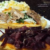 .. de cecina o jamón, de melva en aceite y de huevo duro