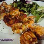 Brocheta de salmón y langostinos