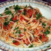 Espaguetis con salsa picante al toque de anchoas