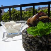 - Hierbabuena, albahaca, unos granos de granada (para decorar)