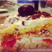 Dos capas de bizcochuelo con un licor suave, crema chantilly en el medio con frutillas y dulce de leche (apenas) y ...